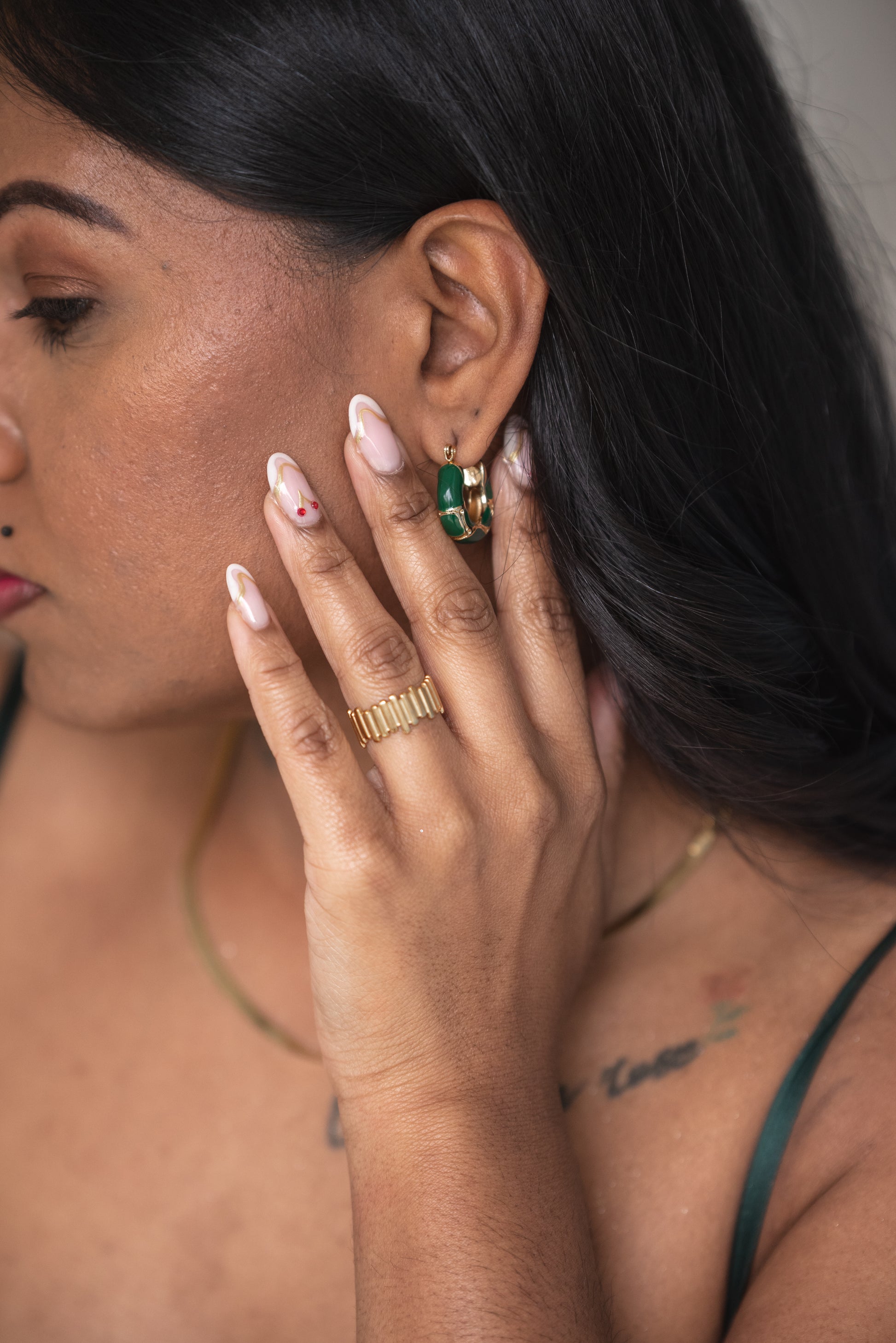 The Jaggered Multiple Line Ring features a thicker design that creates a striking, textured effect. Adjustable for a perfect fit, this statement piece pairs effortlessly with any outfit, adding a playful yet sophisticated touch to your look.