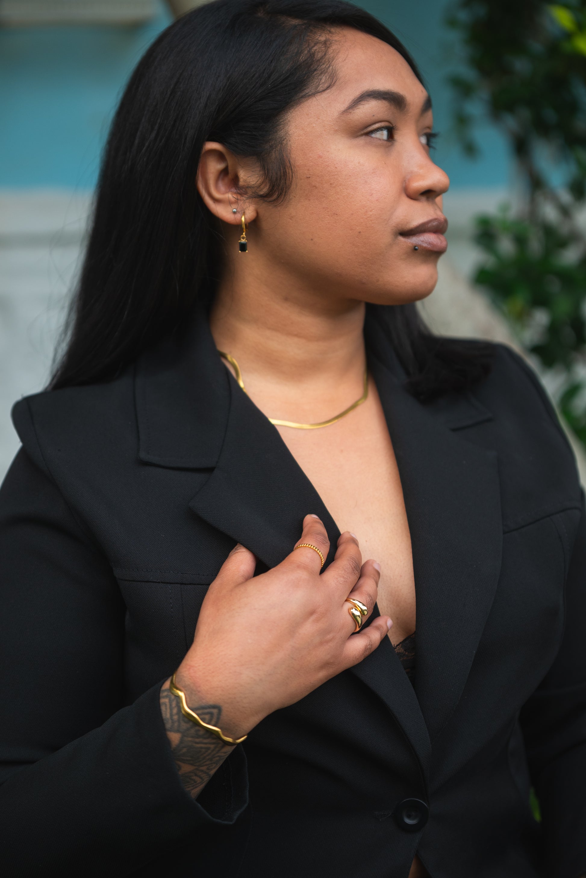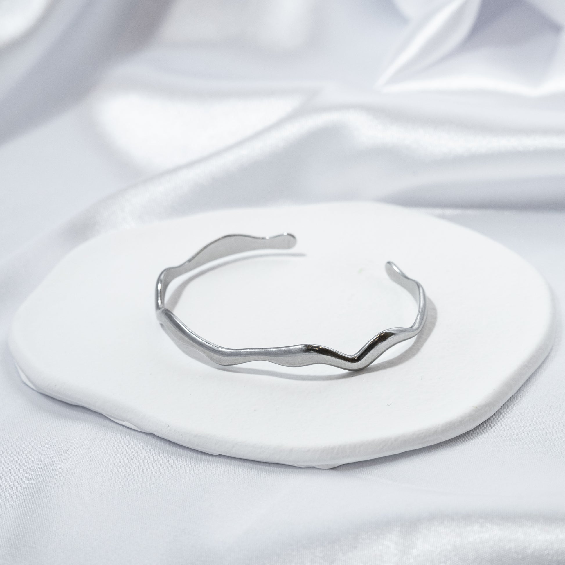 The Serena Wave Bracelet offers a sleek, understated design that effortlessly wraps around your wrist. Perfect for adding a subtle touch of elegance to any outfit, it's a versatile piece that’s a must-have in your jewelry collection.